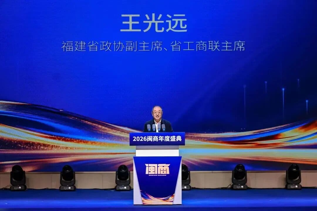 Em 20 de março, Gala Anual de Empresários de Fujian de 2026 Com o tema "Novos Empresários de Fujian, Novos Valores, Novas Responsabilidades", foi realizado em Fuzhou. Wang Guangyuan, Vice-Presidente do Comitê Provincial de Fujian da Conferência Consultiva Política do Povo Chinês e Presidente da Federação Provincial de Indústria e Comércio de Fujian, participou e proferiu um discurso de abertura, oferecendo uma profunda interpretação sobre o estudo e a implementação do espírito das Duas Sessões Nacionais, a compreensão das tendências de desenvolvimento das indústrias e a ativação da poderosa força motriz para a construção de uma província com forte economia privada.